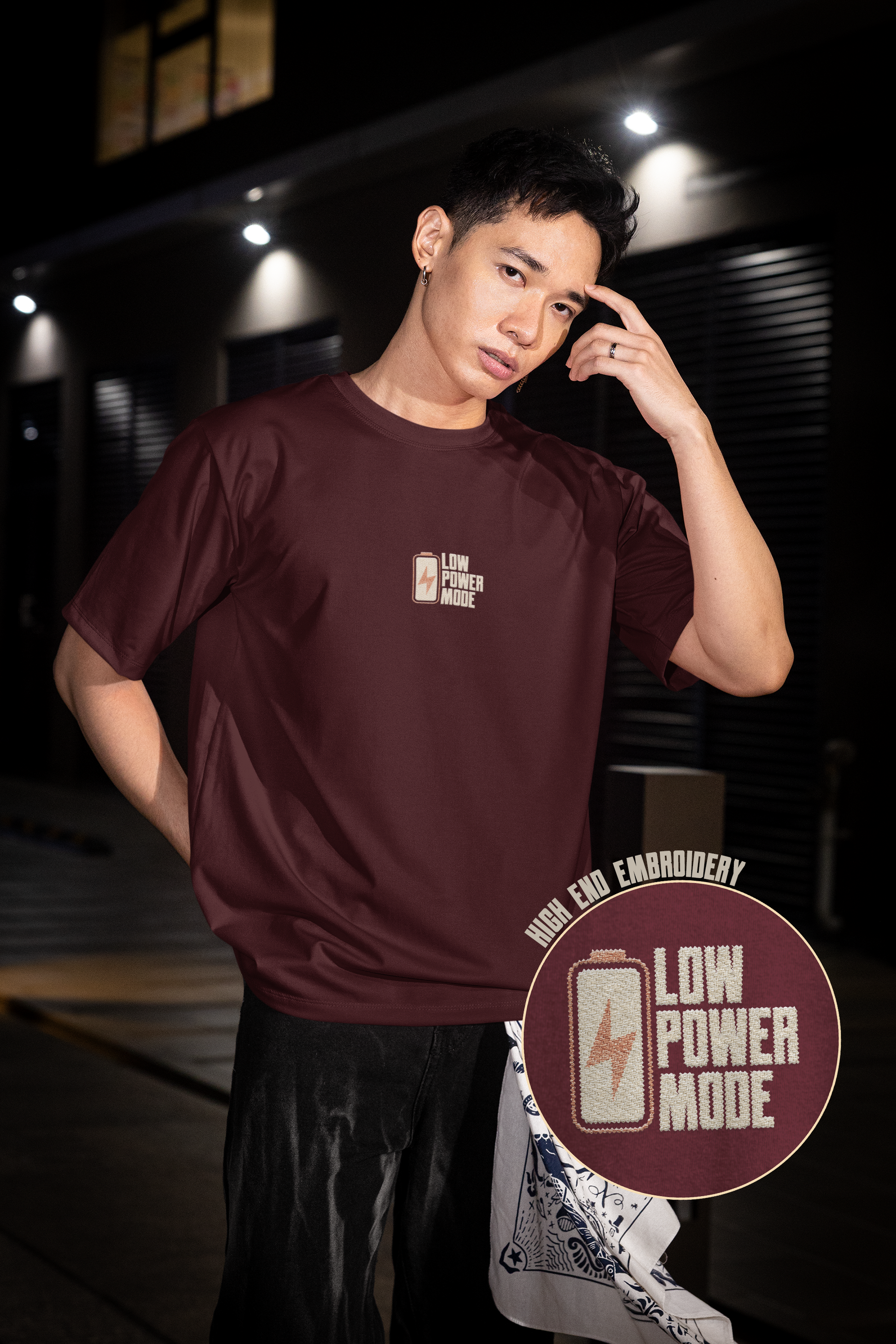 Stay effortlessly cool and comfortable with our Low Power Mode Oversized T-Shirt in rich maroon. Made from premium cotton, this tee is designed with a relaxed fit for ultimate comfort and streetwear vibes.